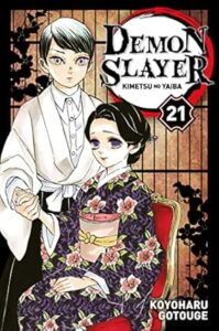 Avec ses 23 tomes, “Demon Slayer” de Koyoharu Gotouge est, à ce jour, la plus longue série de mangas dans laquelle je me suis plongée… Et assez rapidement, avec une étonnante facilité, je dois bien vous l’avouer. J’y ai rencontré Tanjiro Kamado, fils d’un défunt père adoré, unique représentant masculin au sein d’une famille modeste, mais heureuse malgré tout, se contentant du bonheur de vivre ensemble. Il vend du charbon de bois dans les villages alentours, mais il ne fait pas bon traîner dehors à la nuit tombée : Car les démons rôdent et pourraient bien vous massacrer. C’est le drame qui frappe ainsi le jeune Tanjiro au retour d’une tournée. A cette odieuse attaque, n’a “survécu” que sa sœur Nezuko. La malheureuse a elle-même été transformée en démon, pourtant subsistent en elle d’infimes émotions humaines l’empêchant de s’en prendre à ceux qui furent ses semblables. Prêt à tout pour extirper sa sœur de cette affreuse malédiction, Tanjiro Kamado va intégrer le cercle des Pourfendeurs de démons pour annihiler leur père et plus puissant d’entre eux : Muzan Kibutsuji.